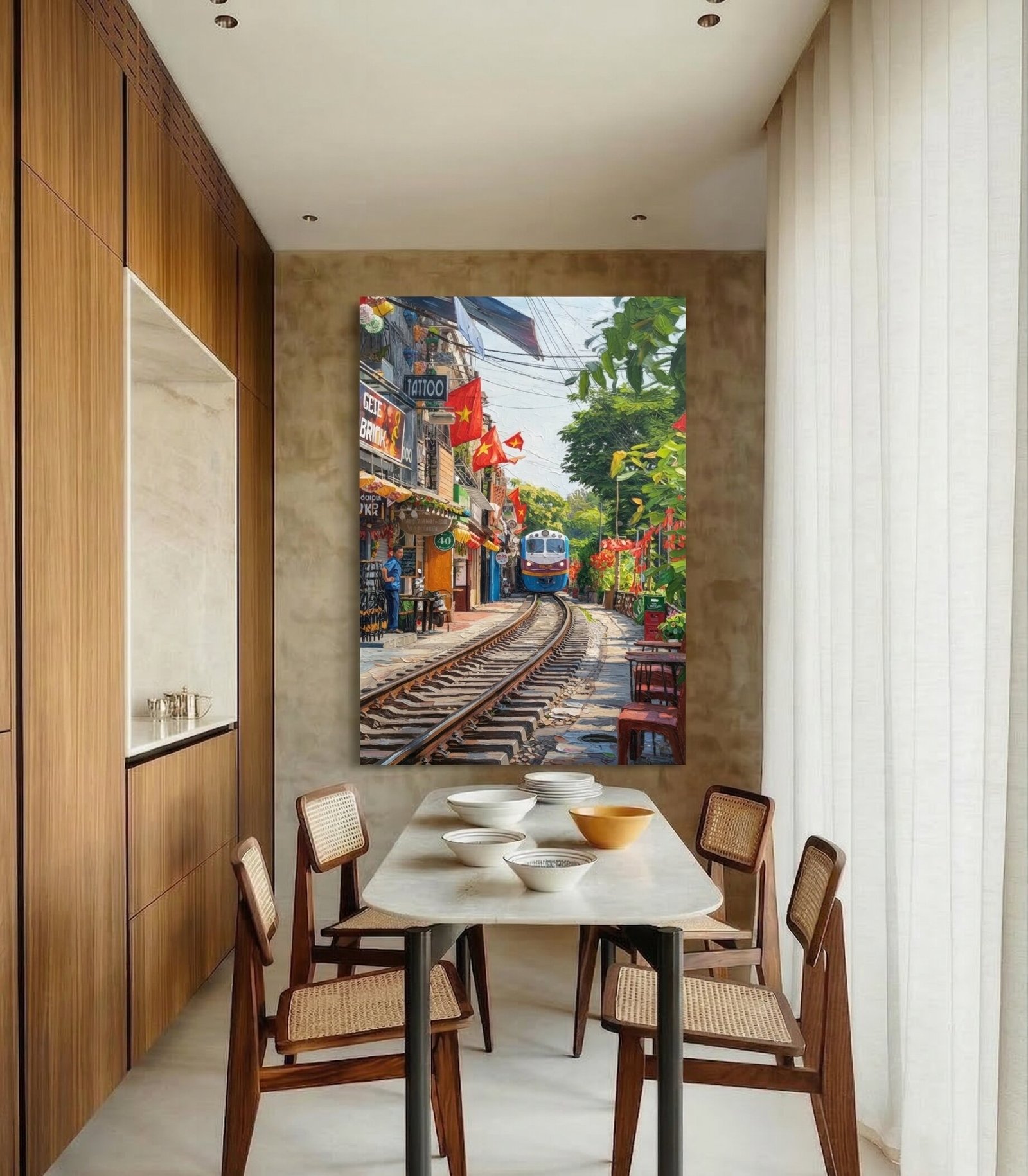 Welcome the exhilarating, vibrant energy of Vietnam’s capital city right into your living space. This captivating Hanoi Train Street Artwork offers a breathtaking, sun-drenched perspective of one of the city’s most unique and world-famous destinations. It serves as a striking visual centerpiece that will immediately add thrilling movement, brilliant color, and incredible texture to your interior home decor.